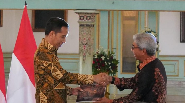 AM Fachir menyerahkan secara simbolis buku ini kepada Jokowi di acara Peringatan Hari Batik Nasional (HBN) 2019 di Keraton Mangkunegaran, Solo, Jawa Tengah, Rabu (2/10/2019). Buku 'Dasawarsa Diplomasi Batik Indonesia' yang disusun Badan Pengkajian dan Pengembangan Kebijakan (BPPK) Kemlu bersama Yayasan Tjanting Batik Nusantara ini merupakan bagian dari peringatan sepuluh tahun ditetapkannya batik Indonesia sebagai Warisan Takbenda United Nations Educational, Scientific, and Cultural Organization (UNESCO).