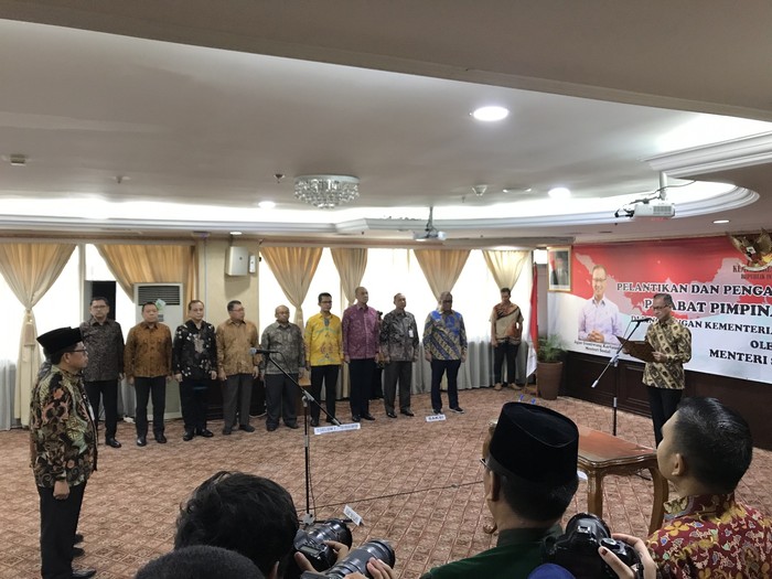 Pelantikan dan pengambilan sumpah jabatan dilakukan di Gedung Kementerian Sosial, Jalan Salemba Raya, Senen, Jakarta Pusat, Jumat (4/10/2019). Turut hadir para pejabat utama di lingkup Kementerian Sosial.