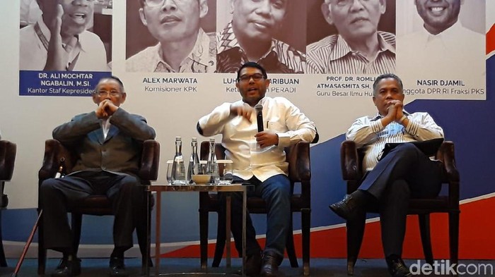 Di tempat yang sama Guru Besar Fakultas Hukum Universitas Padjajaran Prof Romli Atmasasmita sependapat dengan politikus PKS itu. Dia meminta Jokowi tak ragu meneken UU KPK baru.