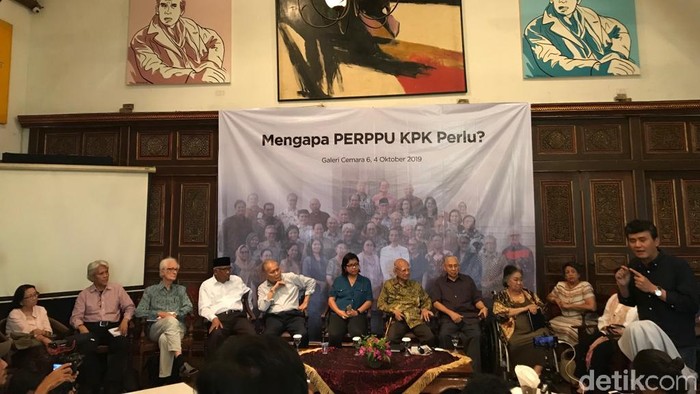 "Coba kalau Pak Jokowi hari ini atau besok keluarkan Perppu. Maka semua yang nolak Perppu itu akan balik lagi pada Jokowi, karena memang mereka adalah bajing loncat, tidak ada prinsip. Jadi ini yang harus disadari oleh Pak Jokowi untuk tidak usah takut mengenai itu," ujar Mochtar dalam pernyataan sikap sejumlah tokoh di Menteng, Jakarta Pusat, Jumat (4/10/2019).
