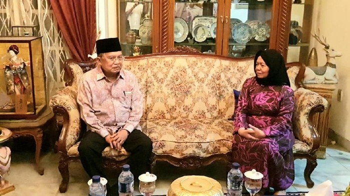 JK bertakziah ke rumah duka ZB Palaguna di Jalan Hertasning Raya Nomor 28, Makassar, Sabtu (5/10/2019) malam. Tiba di lokasi, JK langsung disambut keluarga almarhum.