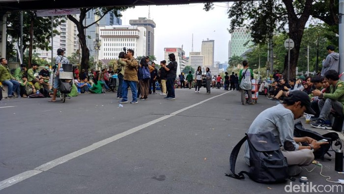 Namun hingga pukul 16.44 WIB, massa masih bertahan di lokasi. Mereka berbincang dengan sesamanya di jalan ataupun di trotoar.