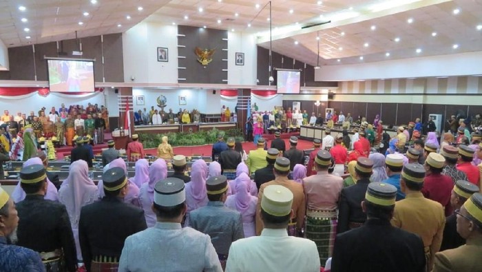 Sidang paripurna HUT ke-350 Sulsel dilangsungkan di Ruang Sidang Paripurna Gedung DPRD Sulsel, Jalan Urip Sumoharjo, Makassar, Sabtu (19/10/2019). Duduk di meja pimpinan sidang, Andi Ina didampingi Gubernur Sulsel Nurdin Abdullah, Wagub Sulsel Andi Sudirman Sulaiman, dan Wakil Ketua DPRD Sulsel Syaharuddin Alrif.