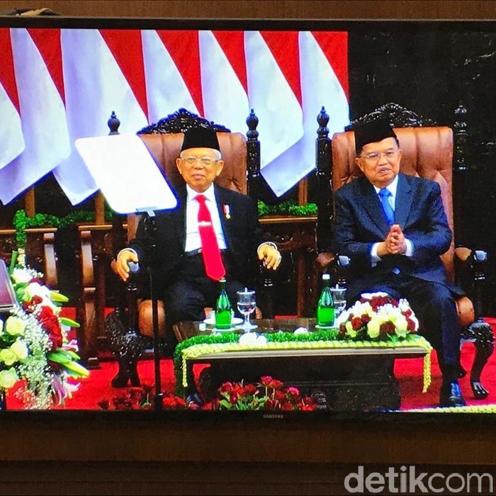 Di awal paripurna, JK dan Ma'ruf sama-sama duduk di sisi kiri ruangan. JK duduk di sebelah kanan Ma'ruf. Seusai pembacaan sumpah, mereka bertukar tempat. Kini Ma'ruf duduk di sisi kanan JK.