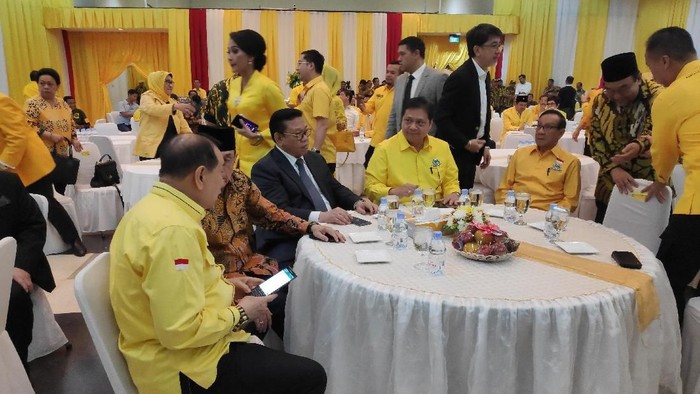 Setelah Airlangga tiba, acara perayaan dimulai. Acara hari ini juga akan diisi dengan pemotongan tumpeng dan pemberian penghargaan.
