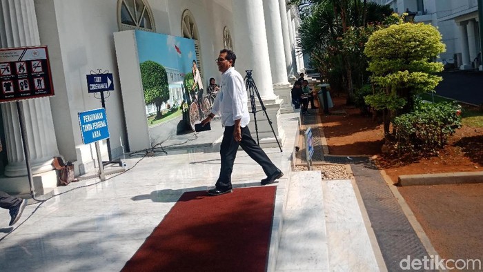 Pantaun detikcom, Fadjroel tiba di Kompleks Istana Kepresidenan, Jakarta Pusat, Selasa (22/10/2019), pukul 14.12 WIB. Fadjroel memakai kemeja putih seperti pakaian yang dikenakan calon-calon menteri yang lain.