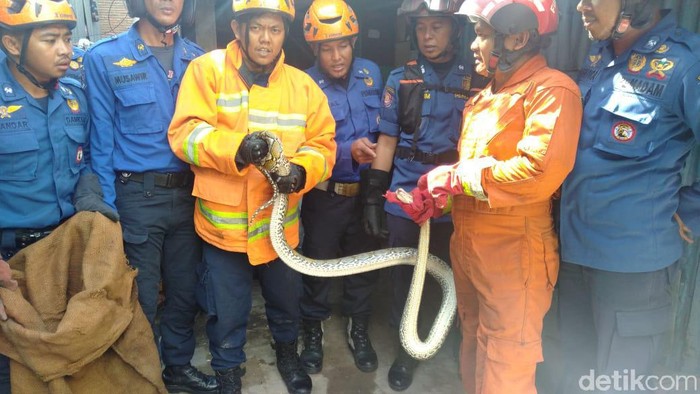 "Tim animal rescue tiba di lokasi dengan menggunakan perlengkapan khusus langsung mengamankan ular tersebut dan langsung dibawa ke kantor Damkar," ujar Cakrawala.