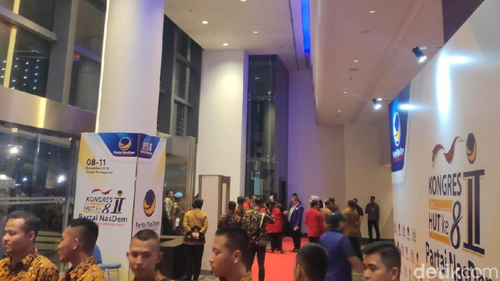 Pantauan detikcom, Megawati hadir lebih dulu bersama Puan di JI Expo, Kemayoran, Jakarta Utara, Senin (11/11/2019) pukul 18.36 WIB. Terlihat Ketum NasDem, Surya Paloh dan Sekjen NasDem, Johnny G Plate menyambut Megawati di lobi lantai I.