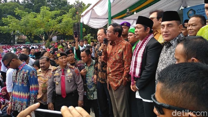 Para peserta terlihat larut dalam lantunan selawat ini mengikuti syair yang dipimpin Mahfud. Saat memimpin selawat itu, turut mendampingi Mahfud sejumlah pejabat. Termasuk Gubernur Edy Rahmayadi dan Wakil Gubernur Musa Rajekshah.