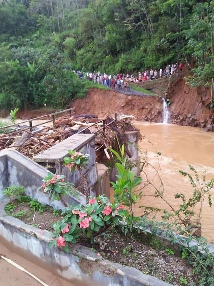 Di Bayah juga ada jembatan yang putus terdampak akibat banjir antara lain jembatan gantung di Kampung Curug Bandung dan Pasir Gombong.