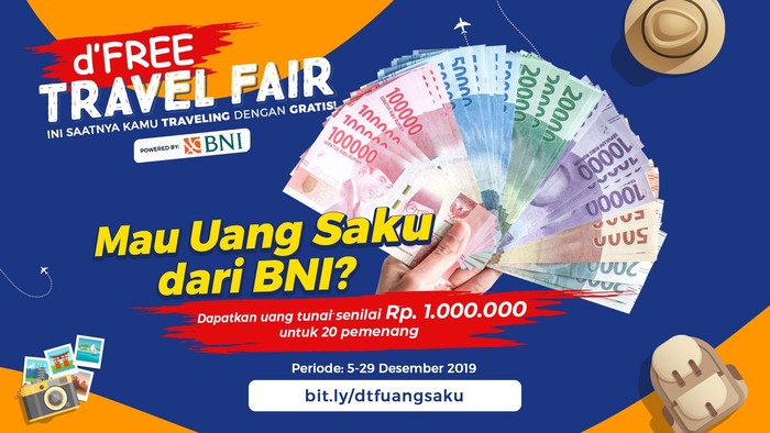 Kamu bisa manfaatkan program d'Free Travel Fair persembahan detikcom dan disponsori oleh BNI untuk mendapat uang saku tambahan saat menikmati liburan.