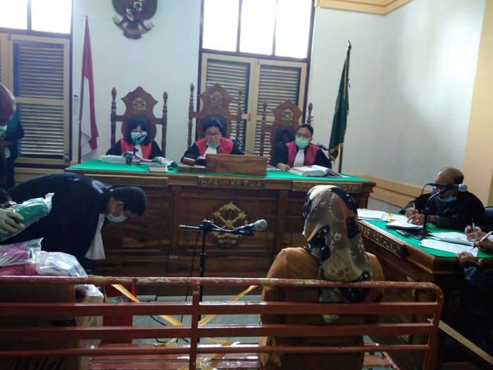 Persidangan digelar di Pengadilan Negeri Medan, Selasa (7/4/2020). Kenny, yang menjadi saksi, hadir di ruang sidang, sementara tiga terdakwa, Zuraida, Jefri Pratama, dan Reza Fahlevi, hanya melihat sidang dari rutan lewat konferensi video.