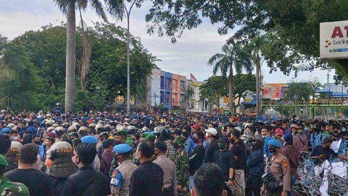 Sebelumnya, mahasiswa dari sejumlah kampus di Pekanbaru, Riau, turun ke jalan. Mereka mengepung gedung DPRD Riau menyampaikan penolakan UU Cipta Kerja.