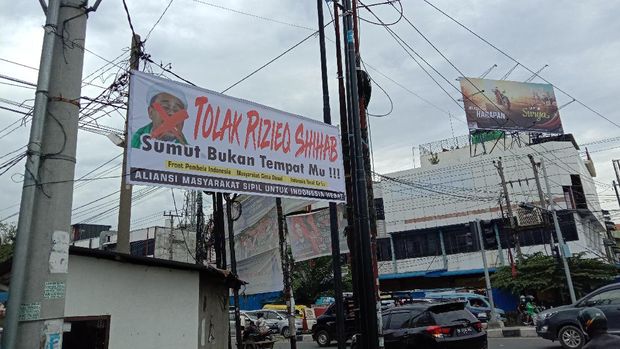 "Tolak Habib Rizieq, Sumut Bukan Tempat Mu!!!" tulis spanduk itu.