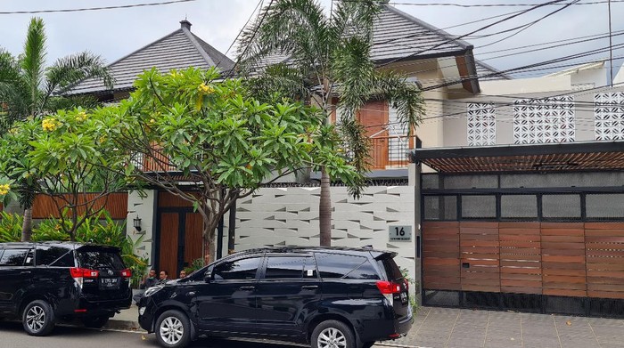 Saat ini penggeledahan masih dilakukan di dalam rumah dua lantai tersebut. Gerbang rumah itu tampak ditutup rapat dan dijaga oleh sekuriti.