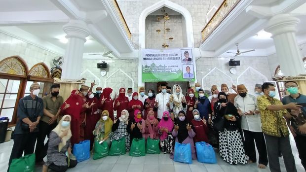 Pembagian paket Yimelu digelar secara simbolis di Masjid Baiturrahman, Kuningan, Jakarta Selatan, Jumat (9/4/2021). Fadel memastikan paket bantuan akan diberikan kepada masyarakat yang pantas menerima.
