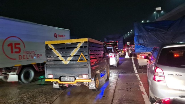 Pada Rabu (6/5/2021), sekitar pukul 01.00 WIB, detikcom menyusuri Jalan Tol Japek dari arah Jakarta menuju Cikampek. Kemacetan bermula dari KM 25.