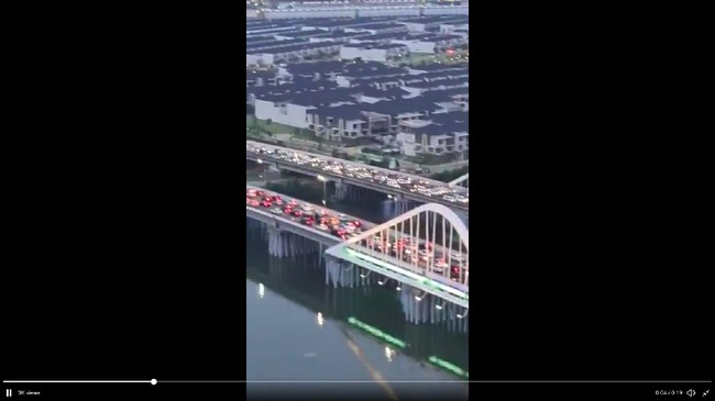 Di dalam video yang beredar, terlihat kemacetan lalu lintas terjadi di jembatan PIK. Mayoritas kendaraan berupa mobil menumpuk di jembatan tersebut.