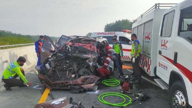 "Saat di Km 64 kendaraan out control atau hilang kendali. Kemudian menabrak mobil truk yang mengangkut sawit," kata Donni kepada wartawan, Kamis (20/5/2021).
