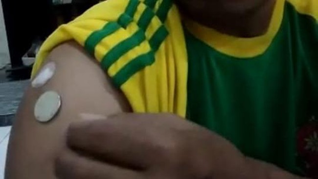Mereka tampak membuktikan kebenaran narasi reaksi magnetis itu dengan menempelkan magnet pada bagian lengan bekas suntikan vaksin COVID-19. Hasilnya, magnet-magnet itu pun menempel di lengan para penerima vaksin tersebut.