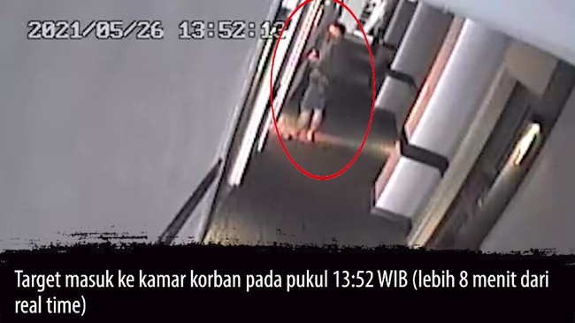 Gerak-gerik pelaku tertangkap rekaman CCTV hotel. Pelaku datang seorang diri ke kamar hotel pada pukul 13.52 WIB, Rabu (26/5).