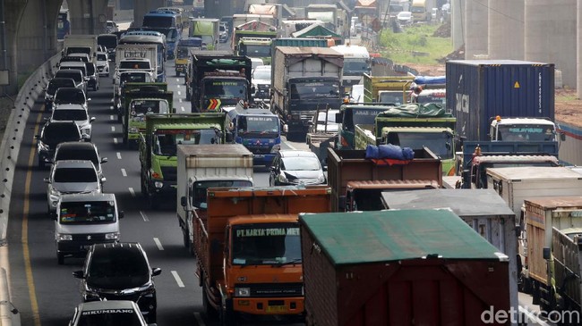 Arus lalu lintas di Tol Jakarta-Cikampek yang mengarah ke Cikampek macet akibat meningkatnya volume kendaraan. Kepadatan kendaraan sudah terjadi dari Km 41 sampai Km 49.