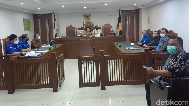 Pantauan detikcom di PN Jakpus, Jl Bungur Besar Raya, Jakarta Pusat, Kamis (3/6/2021), hadir dalam sidang Sekjen Partai Demokrat Teuku Riefky Harsya dan kuasa hukumnya, Bambang Widjodjanto.