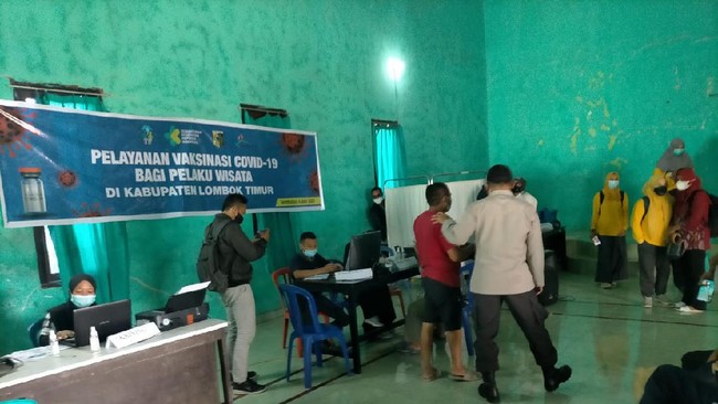 Para pelaku wisata di Kecamatan Sembalun, Kabupaten Lombok Timur, Nusa Tenggara Barat (NTB) mulai menerima vaksin. Vaksinasi dilakukan agar Kabupaten Sembalun bisa memperoleh status daerah green zone pariwisata.