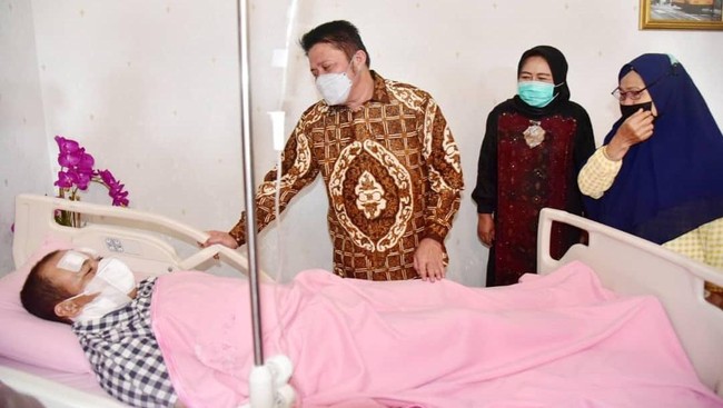 Herman Deru datang ke RS Bhayangkara M Hasan Palembang untuk membesuk Bripka Ridho pada Sabtu (5/6/2021). Dia mengaku salut dengan keberanian Ridho melawan pelaku meski telah mengalami luka tusuk.