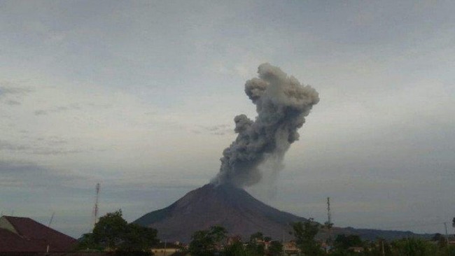 Gunung Sinabung di Kabupaten Karo, Sumatera Utara, mengalami erupsi. Abu vulkanik menyebar hingga ke Stabat, Kabupaten Langkat, yang berjarak sekitar 80 km.