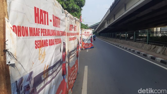 Terlihat di Jl Tendean dari Buncit arah Blok M, Jakarta Selatan, Selasa (8/6/2021) menjelang siang, galian yang ditutup papan seng terlihat berderet-deret.