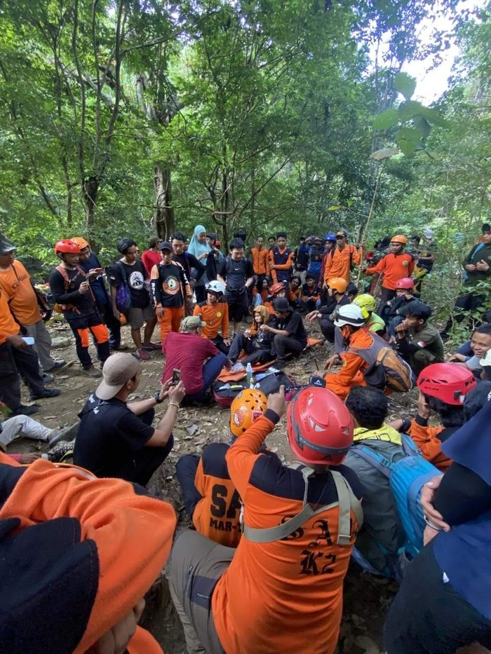 Setelah ditemukan, tim SAR gabungan berusaha mengevakuasi Eva ke kaki gunung.