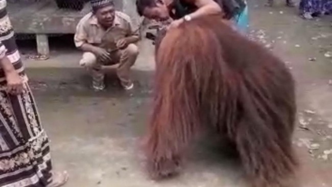 Keberadaan orang utan disebut sempat menggegerkan warga setempat dan menjadi tontonan warga desa. Para warga berusaha mendekati satwa yang dilindungi itu.