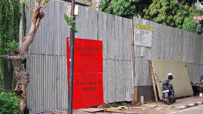Pantauan detikcom di Jl Lembang, Menteng, Jakpus, Jumat (11/6/2021), tampak spanduk bertulisan 'bangunan ini disegel' yang ditempelkan pada seng penutup proyek hunian mewah itu.