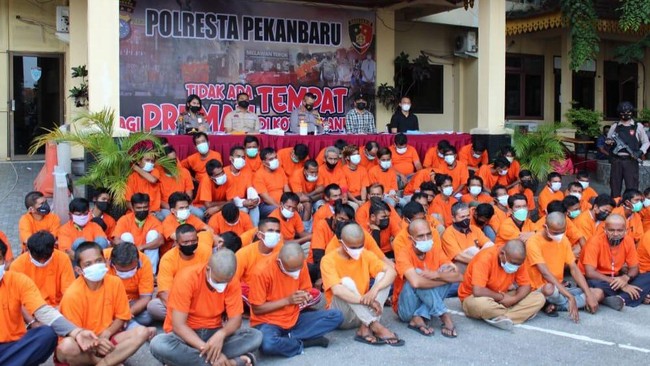 Jajaran Polresta Pekanbaru menangkap puluhan orang diduga preman. Mereka ditangkap karena telah meresahkan masyarakat.