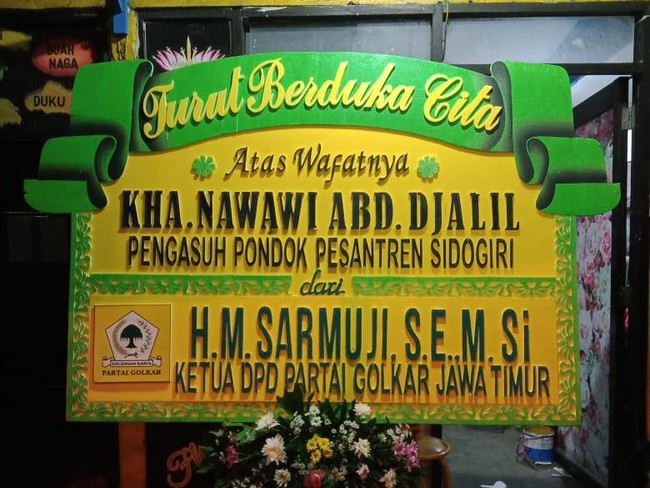 "Golkar Jatim ikut kehilangan Kiai Nawawi. Golkar Jatim berbela sungkawa mendalam atas wafatnya Kiai Nawawi dan merasa kehilangan Kiai yang meneduhkan," tulis Golkar Jatim dalam pernyataan resminya, Senin (14/6/2021).
