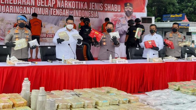 "Transaksi narkoba jaringan Timur Tengah yang kali ini mereka bekerja sama dengan warga negara asing yang menjadi narapidana Lapas di Cilegon," kata Kapolri Jenderal Listyo Sigit Prabowo dalam keterangan kepada wartawan di Polda Metro Jaya, Jakarta, Senin (14/6/2021).