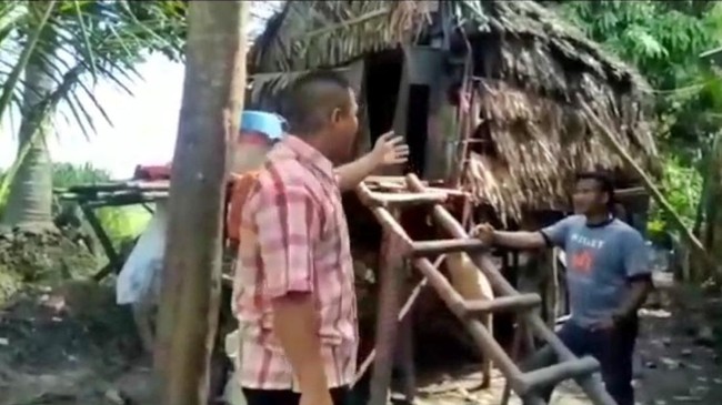 Bahkan, saat wartawan mencoba masuk ke kediaman keduanya yang berada 1,5 meter dari atas tanah itu, tercium bau yang tidak sedap. Bau tersebut mengarah ke beberapa karung yang isi di dalamnya hewan peliharaan, yakni ayam.