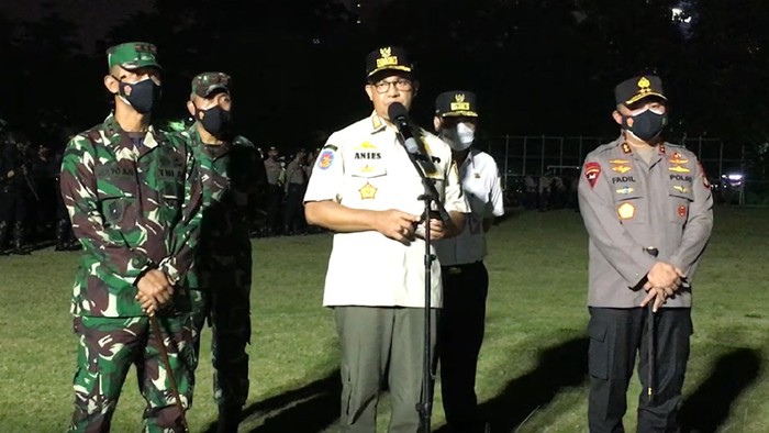 "Saat ini sedang dalam masa pandemi dan kondisinya makin hari makin mengkhawatirkan karena itu kita semua bersiaga bersiap untuk menegakkan protokol kesehatan," ujar Anies.