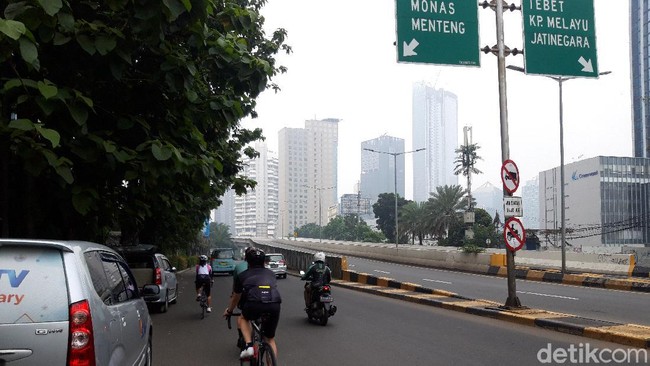 Pantauan detikcom di lokasi, tepatnya di depan City Walk Sudirman sisi Tanah Abang, pukul 07.30 WIB, Minggu (20/6/2021) terpantau JLNT Kampung Melayu-Tanah Abang kini sudah steril dari pengguna sepeda road bike. Jalur ini tampak sudah kembali normal dilewati kendaraan roda empat.