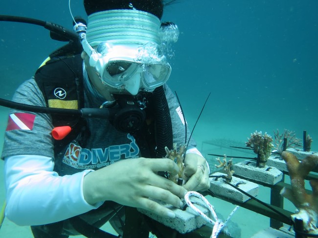 Ia pun mengungkap restorasi terumbu karang ini mengikutsertakan 9 penyelam yang berpengalaman, antara lain dari BNI HiMovers Dive Community dan Tim Seasoldier Sulut.