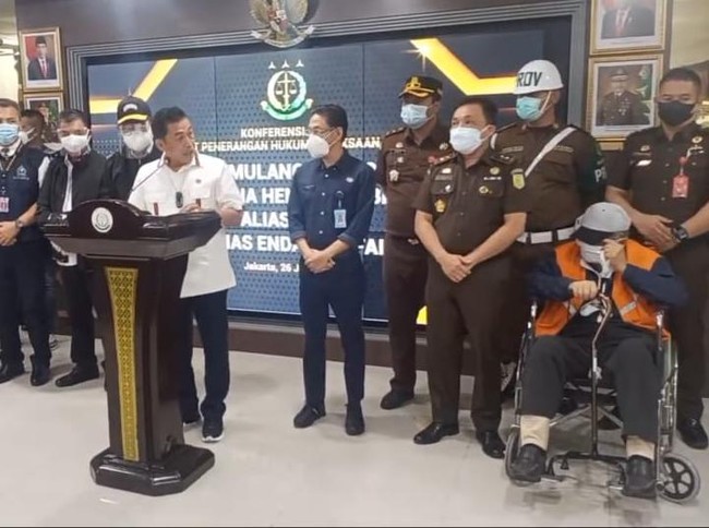 "Pada hari ini Sabtu 26 Juni 2021 sekitar pukul 19.40 WIB telah mendarat di Bandara Soekarno-Hatta Pesawat Garuda GK837 dari Singapura dengan membawa DPO Kejaksaan atas nama terpidana Hendra Subrata alias Anyi yang menggunakan paspor dengan identitas palsu," kata Jamintel Kejagung Sunarta dalam konferensi pers di Kantor Kejagung RI, Jakarta, Sabtu (26/6/2021).