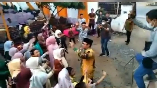 Dalam potongan video lain, Ardito sambil memegang mikrofon berjalan ke tengah kerumunan warga. Dia juga sempat melambaikan tangan ke kamera. Beberapa orang tampak berusaha mengingatkan warga agar menjaga jarak. Namun kerumunan tak terhindarkan.