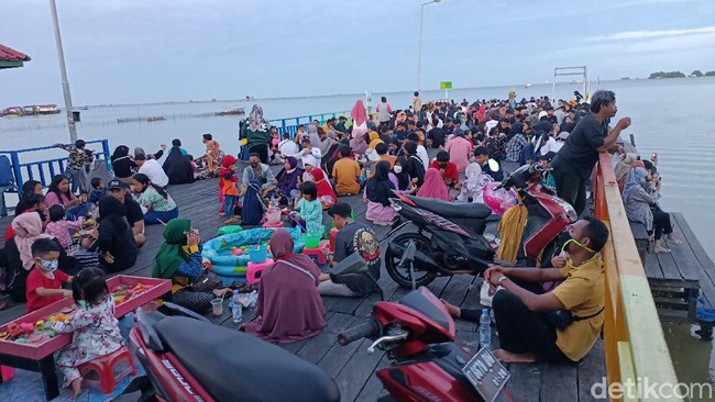 Dari pantauan detikcom pada Minggu (4/7/201), terlihat sisi ujung dari tempat wisata ini dipenuhi pengunjung. Bahkan sebagian pengunjung tidak menggunakan masker lantaran tengah menyantap makanan dan minuman.