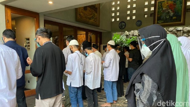 Pantauan detikcom di rumah duka, Jalan Taman Patra XII Jaksel, Senin (5/7/2021), salat gaib dimulai pukul 08.27 WIB. Jemaah salat gaib terdiri dari keluarga Harmoko.