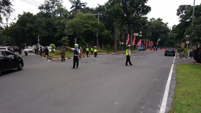 Suasana jalan yang ditutup pun tampak lengang. Sementara jalan yang menjadi lokasi pengalihan arus tampak sedikit padat.