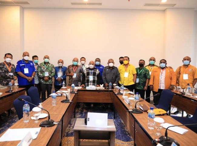 "Pertemuan hari ini adalah silaturahmi antara gubernur selaku kepala daerah dan Ketua DPD Demokrat bersama dengan 8 parpol koalisi Lukas Enembe-Klemen Tinal jilid II," kata juru bicara Gubernur Papua, Muhammad Rifai Darus, kepada wartawan, Selasa (13/7/2021).