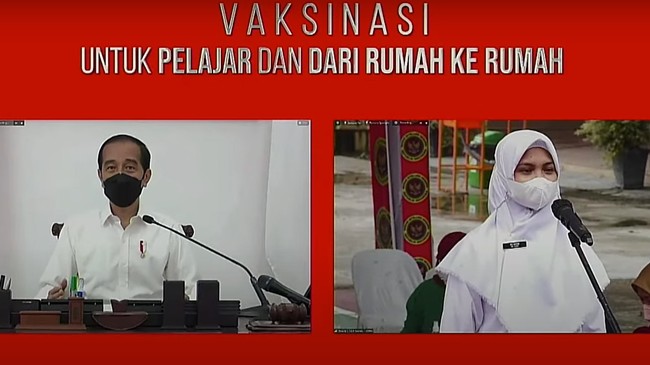 "Untuk program vaksinasi kepada pelajar ini, apakah ada kemungkinan untuk pembelajaran tatap muka karena kami sangat rindu belajar di sekolah, Pak? Karena pemahaman di sekolah lebih nangkep, kerja kelompok, kaya presentasi. Kalau secara online, terkadang gangguan jaringan, Pak, dan ketika guru menjelaskan putus-putus, Pak," kata Ayu dalam kegiatan Presiden Menyapa Peserta Vaksinasi COVID-19 untuk Pelajar SMP dan SMA, seperti disiarkan di akun YouTube Sekretariat Presiden, Rabu (14/7/2021).