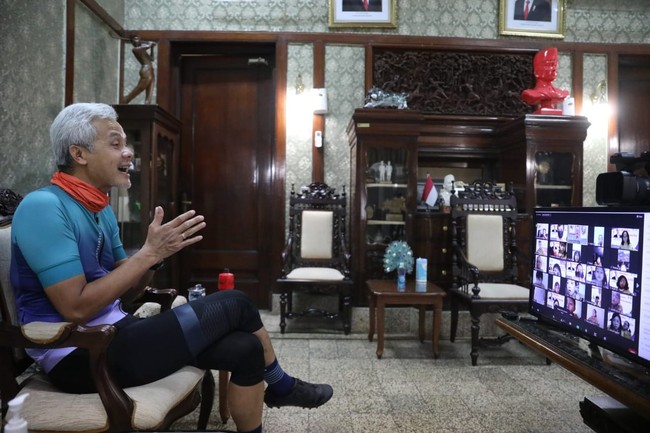Gubernur Jawa Tengah, Ganjar Pranowo mendengar curhatan Ichels, seorang pelajar SD Marsudirini saat mengikuti acara penutupan Masa Pengenalan Lingkungan Sekolah (MPLS) secara daring. Ichels bercerita mengenai ayahnya yang tidak bisa berjualan selama PPKM Darurat.