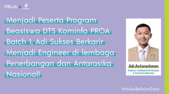 "Untuk memahami satelit ternyata membutuhkan data. Oleh karenanya, saya perlu memahami data science. Karena motivasi ini, saya mendaftarkan diri di program beasiswa DTS Kominfo Batch 1," Cerita Adi dikutip dalam keterangan tertulis, Jumat (16/7/2021).